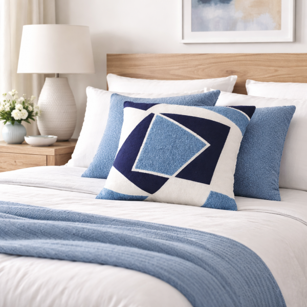 ALMOHADON 45X45CM BLANCO/AZUL
