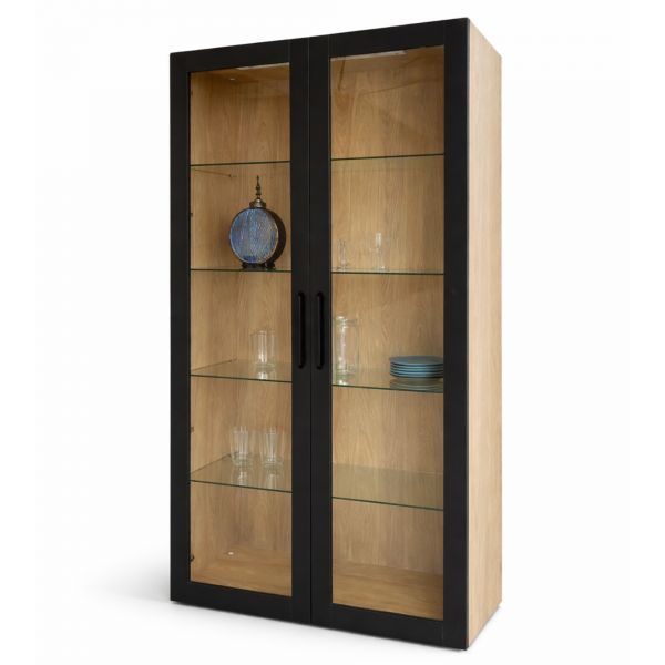 APARADOR CRISTALERO HERA 100X40X180CM HICKORY NATURAL NEGRO V