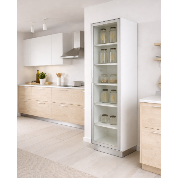 Mueble de cocina alto funcional tipo alacena, con repisas reforzadas, puertas con cierre suave y melamina premium, ideal para optimizar el orden y el espacio.