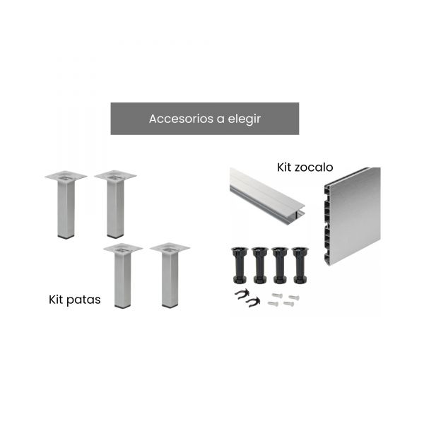 Complementos: Si desea instalarlo sobre patas o zocalos, disponemos de los accesorios en nuestra web (se adquieren por separado).