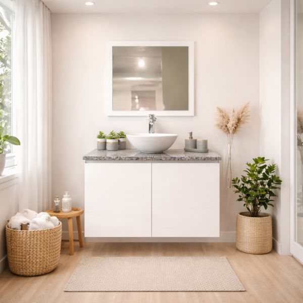 Material: Aglomerado de alta densidad revestido en melamina con tratamiento antihumedad y antihongos, con certificaciones de sostenibilidad (ECC).