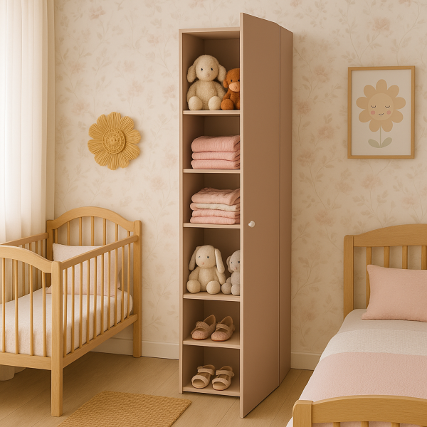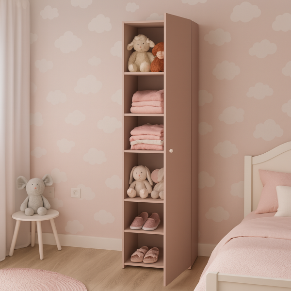 Diseñado especialmente para espacios reducidos, cuenta con puras repisas abiertas y cerradas que permiten guardar ropa doblada, zapatos, juguetes o útiles escolares de manera ordenada. Su tamaño práctico lo hace ideal para dormitorios infantiles o habitaciones pequeñas, ofreciendo funcionalidad y aprovechamiento del espacio. Fabricado en melamina de alta calidad, es resistente y fácil de limpiar.