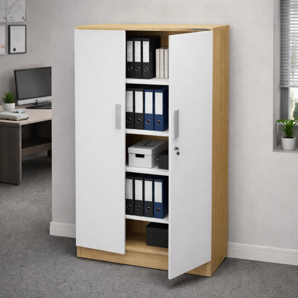 Más orden, más productividad. Con cerradura con llave integrada, repisas internas regulables, gran capacidad de almacenamiento vertical, material en melamina premium.
