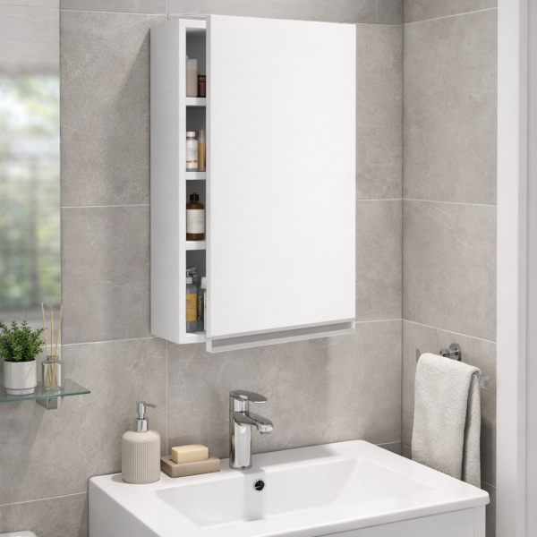 - Utilidad: Almacenamiento. Ideal para complementar espejos planos en ambientes de baño.