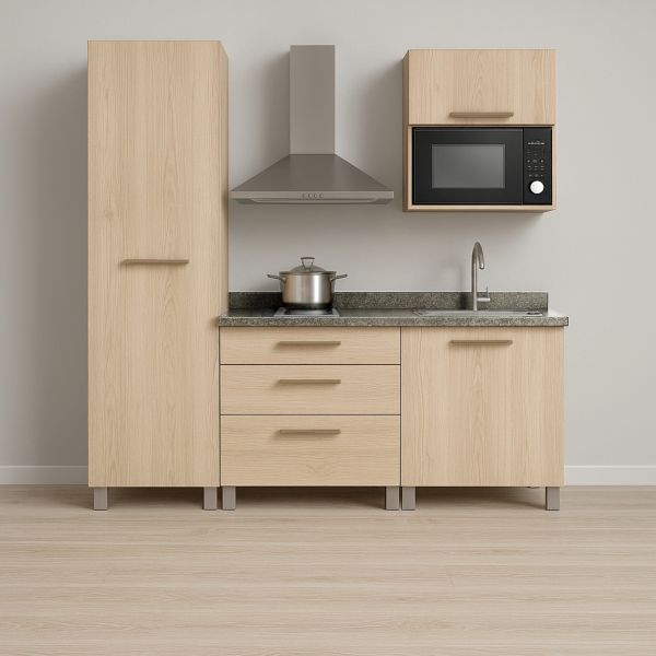 COMBO COCINA COMPLETA ESSENTIAL PLUS ROBLE VICENZA GRIS 190 CM
