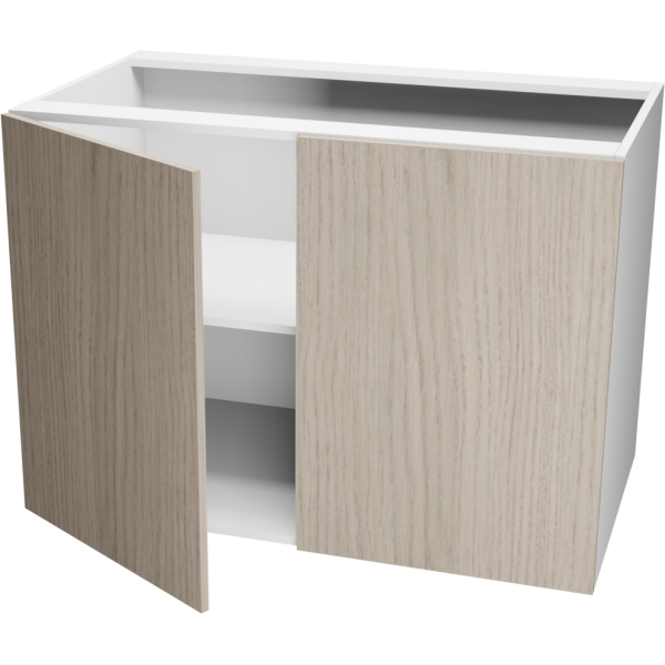 Módulo bajo de cocina con puertas de cierre suave y espacio interior con repisa, ideal para una maxima y comoda organizacion.