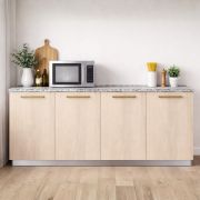 Cuidado: No apto para electrodomesticos empotrables ni piletas. Permitir que puertas cierren a su ritmo sin forzar o apurar las bisagras de frenado asistido. Evitar productos abrasivos, golpes y humedad excesiva. No colocar directamente sobre el suelo, sin patitas.