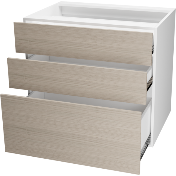 Interior: 3 cajones de diferentes dimensiones, con rieles de frenado asistido para cierre suave de cajones.