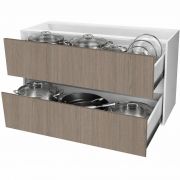 Mueble bajo de cocina diseñado para optimizar el almacenamiento, ofreciendo cajones amplios, acceso cómodo y cierre suave, ideal para mantener tu cocina ordenada y funcional todos los días.
