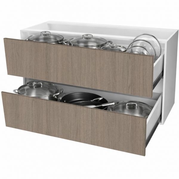 Complementos: Requiere de 2 tiradores, mesada y patas. Si desea instalarlo sobre zocalos, disponemos del kit en nuestra web (se adquieren por separado).
