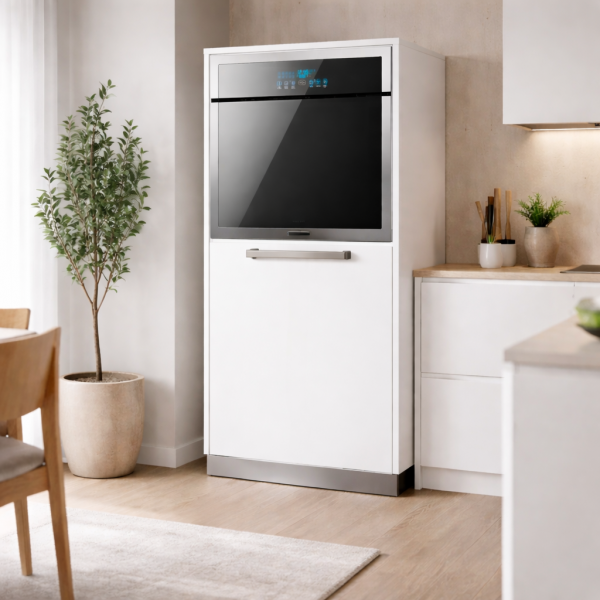 Mueble de cocina moderno para integrar horno con seguridad y ventilación adecuada. Fabricado en melamina resistente, ideal para optimizar espacio y mantener una estética limpia en la cocina.