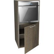 Mueble de cocina moderno para integrar horno con seguridad y ventilación adecuada. Fabricado en melamina resistente, ideal para optimizar espacio y mantener una estética limpia en la cocina.
