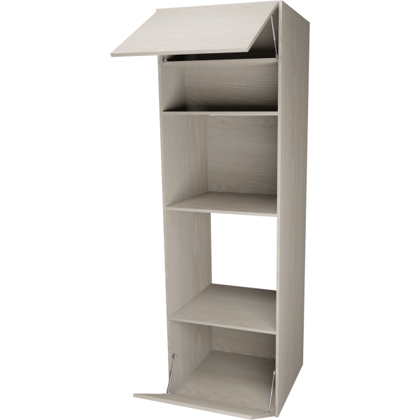 - Cuidado: Permitir que puerta rebatible cierre a su ritmo sin forzar o apurar las bisagras de frenado asistido. Para el microondas, se recomienda dejar 3 cm a los costados, 5 cm arriba y 10 cm detrás del microondas para asegurar la correcta ventilación del electrodoméstico (estas medidas son generales, consulte siempre el manual de su electrodoméstico para confirmar las recomendaciones del fabricante).