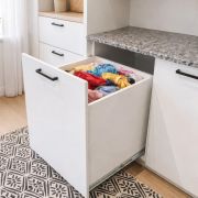 Mueble cesto de ropas en melamina de alta calidad, con apertura frontal deslizable y frenado asistido.