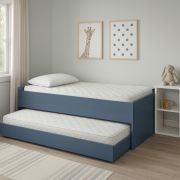 Aprovechá mejor el espacio con esta camita pequeña para niños que incluye una cama desplegable en la parte inferior, ideal para visitas o hermanos. Funcional y práctica, combina seguridad, comodidad y diseño pensado para dormitorios infantiles. Su estructura resistente garantiza durabilidad, mientras que su tamaño compacto se adapta perfectamente a habitaciones pequeñas.