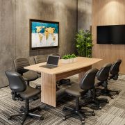 Mesa de reunión funcional y resistente, ideal para encuentros de trabajo cómodos, organizados y profesionales en oficinas modernas.