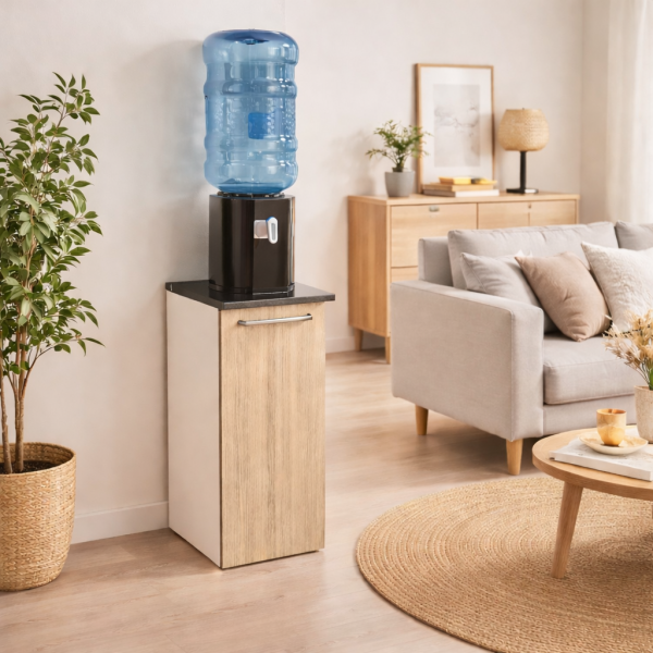 Diseñado para soportar el dispenser y alojar el bidón de forma práctica y segura, optimizando el espacio y protegiendo de la humedad.